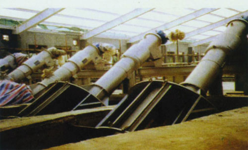 污水由下端面進入轉鼓型格柵內(nèi),垃圾被轉鼓格柵阻擋,回轉式齒耙將垃圾沿轉鼓方向往上推,到頂部時,由于受到重力及刮刷的作用,使垃圾落入正正文的集污槽內(nèi),由螺旋輸送機將垃圾輸送到卸污口處,裝袋或其它形式將垃圾運走。
